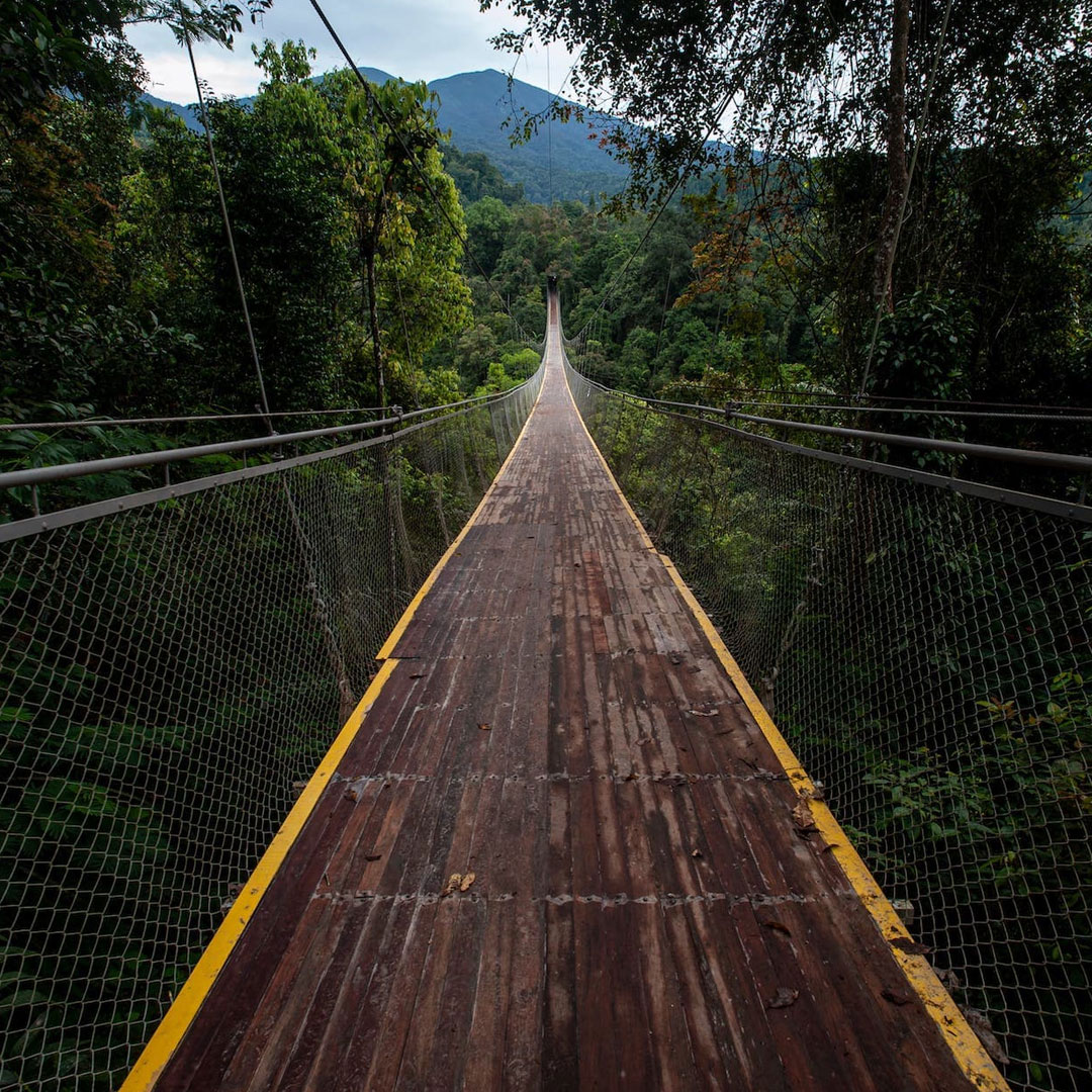 Jembatan fenomenal di Sukabumi ini masih satu lokasi dengan Curug Sawer di kawasan konservasi Taman Nasional Gunung Gede Pangrango Resor Situ Gunung. Panjangnya sekitar 240 meter, jembatan gantung ini diklaim menjadi yang terpanjang di Asia.